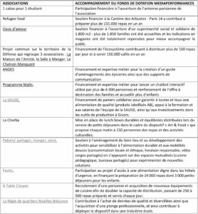 Chaque projet bénéficie d’un mécénat financier mais aussi, lorsque cela est possible, d’un mécénat de compétences : les collaborateurs de Médiaperformances peuvent offrir un mois de leur temps à une association partenaire (au bout de 5 ans d’ancienneté), tout en étant rémunérés par l’entreprise. Ce dispositif incarne pleinement la raison d’être du Fonds de dotation : lutter contre la précarité alimentaire et œuvrer pour une alimentation digne et de qualité pour les populations les plus vulnérables.
